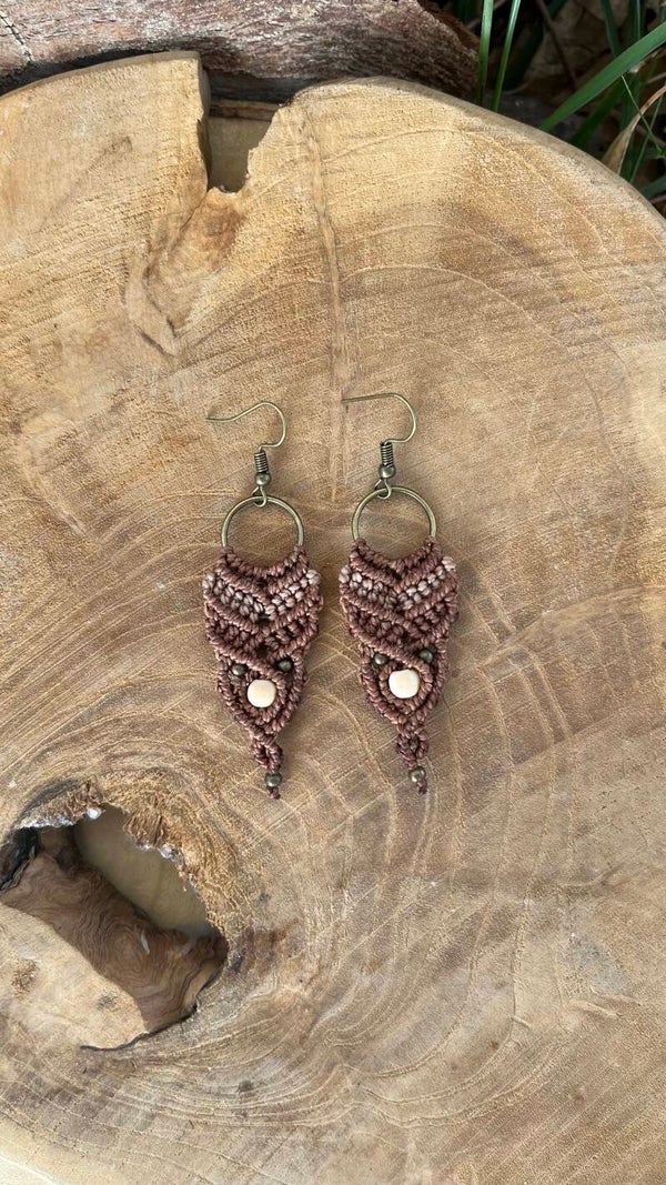 Macramé oorbellen medium bruin/licht bruin