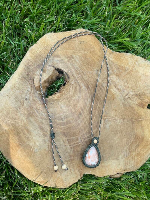 Handgemaakte macrame ketting met Oranje Calciet edelsteen.