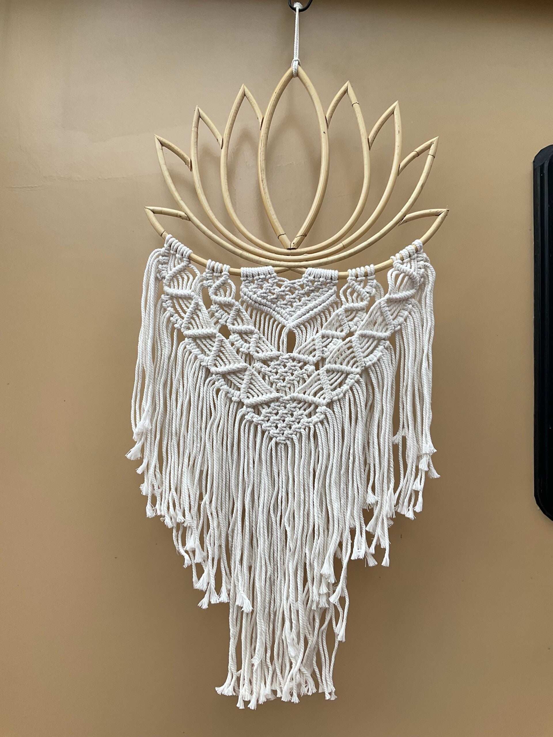 Prachtige macramé dromenvanger in de vorm van een Lotus.